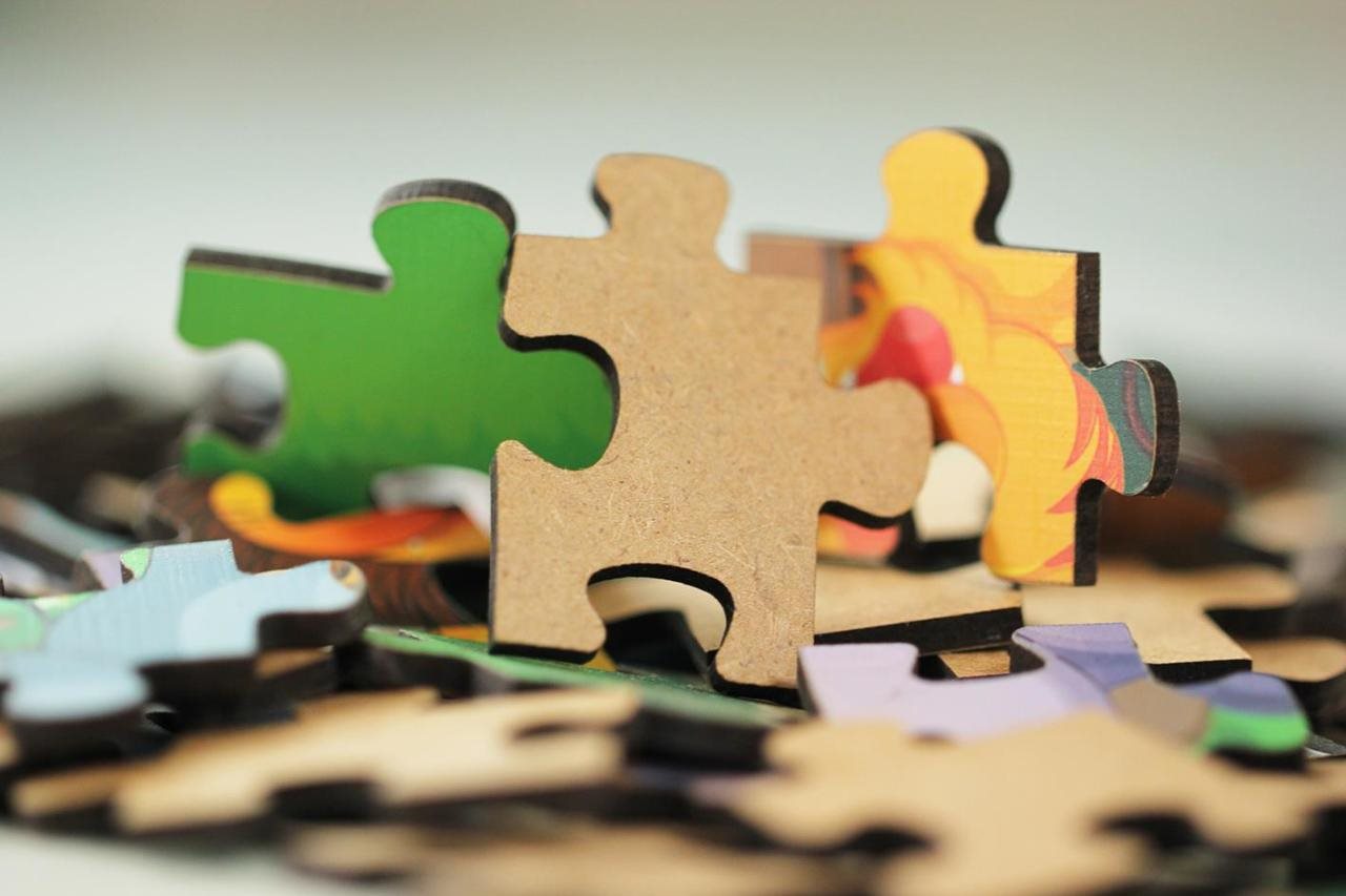 - Jednotlivé dílky jsou vyraženy z pružného afrického dřeva - tenké dřevěné překližky.