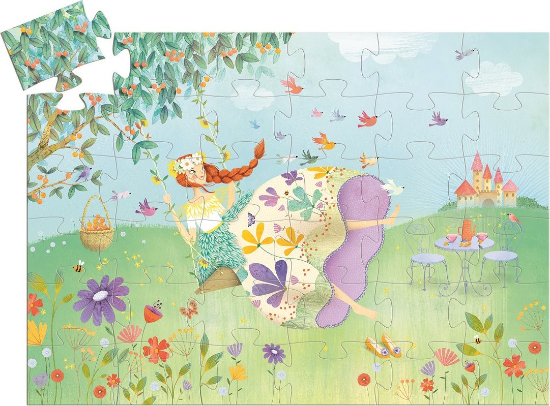 Originální puzzle ve tvaru princezny skrývají v 36 dílcích obrázek princezny na krásné rozkvetlé louce.