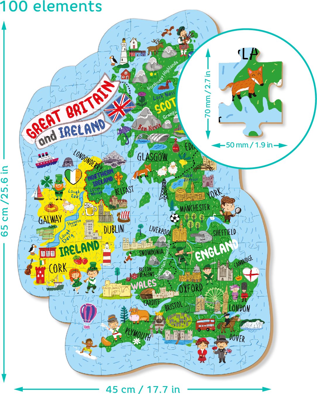 Puzzle Mapa Velké Británie a Severního Irska 100 dílků