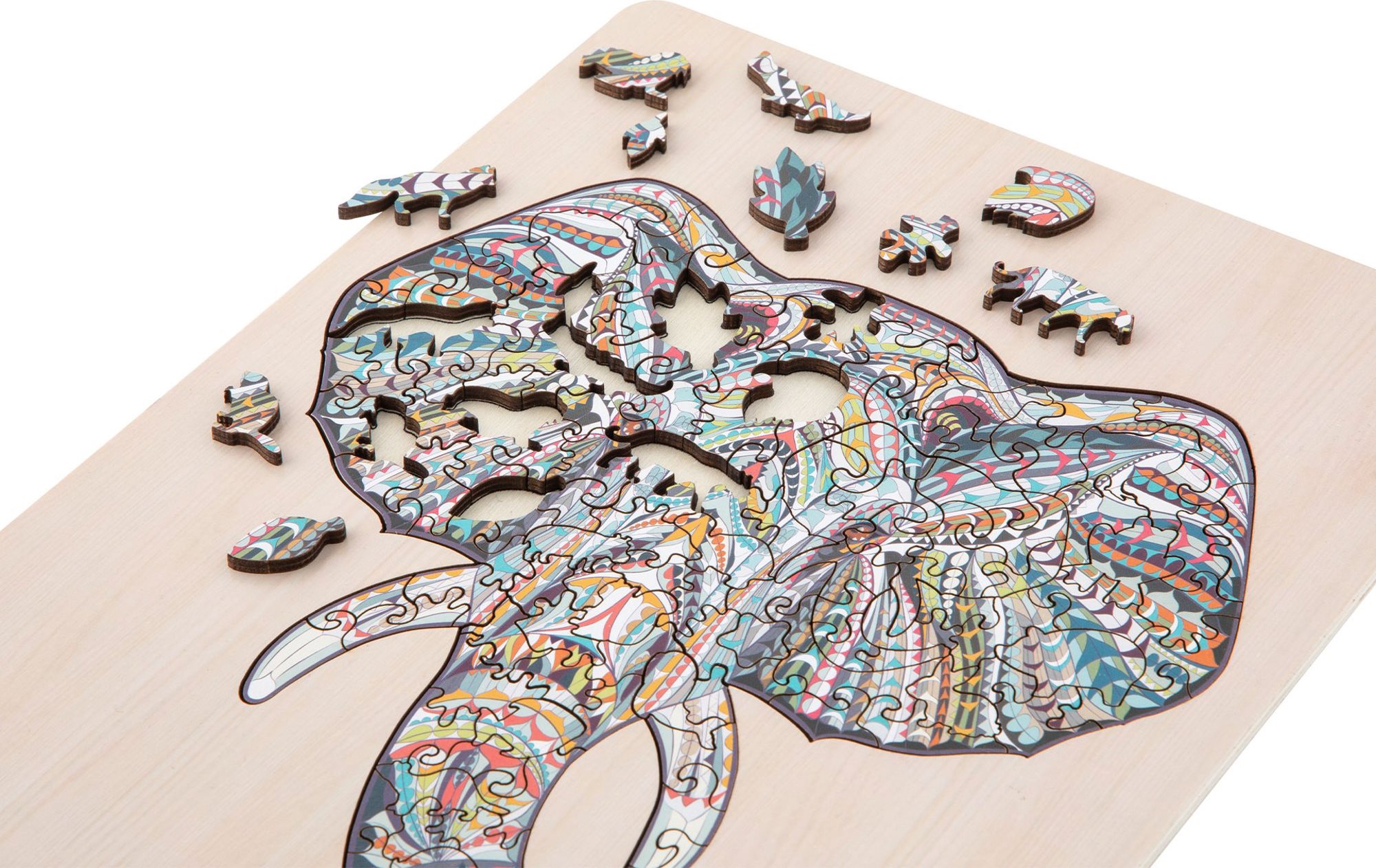 Dřevěné puzzle Moxy se stojánkem Slon 137 dílků