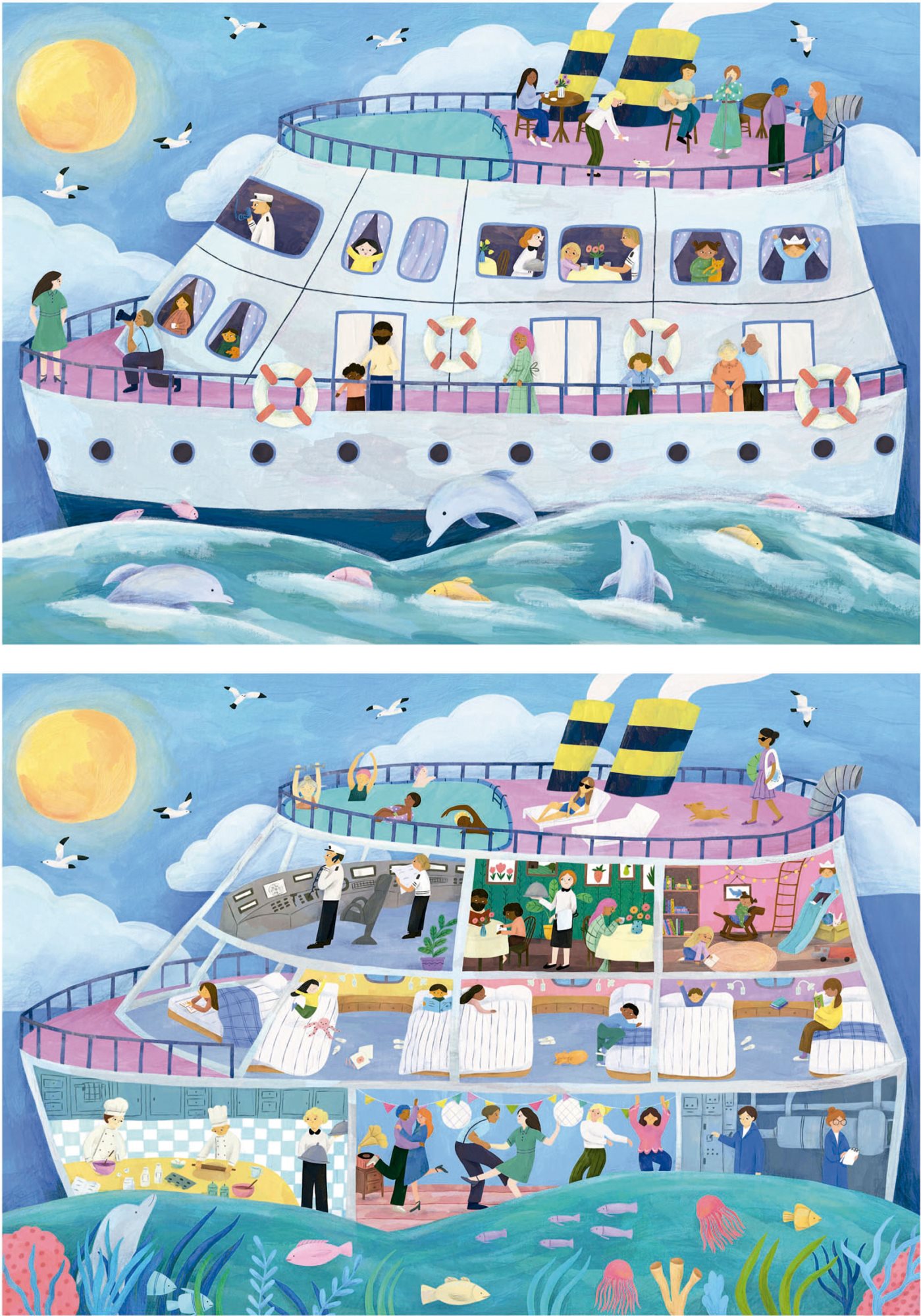 EDUCA Puzzle Outside/Inside Výletní loď 2x100 dílků