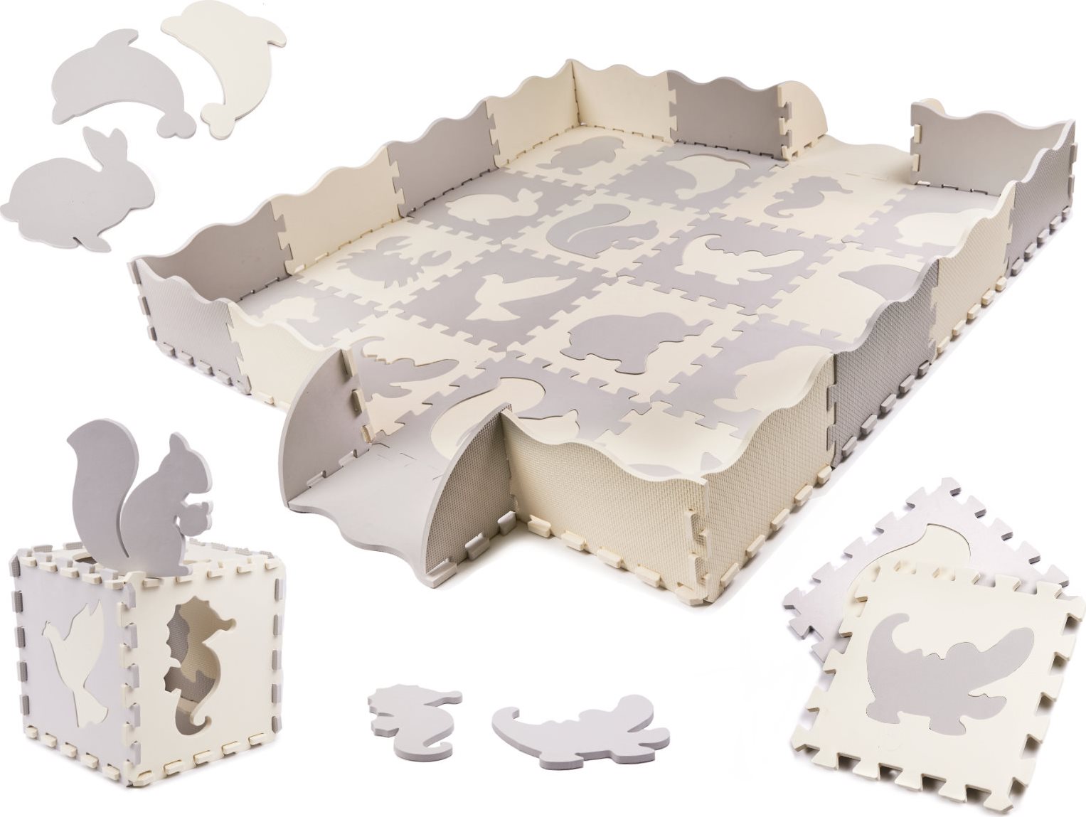 KIK Pěnové puzzle šedo-krémové Zvířátka