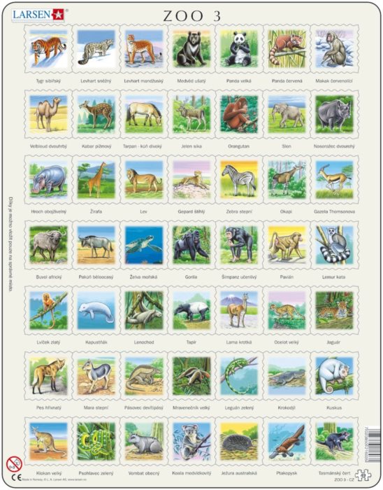 LARSEN Puzzle Zvířata světa (ZOO 3) 49 dílků