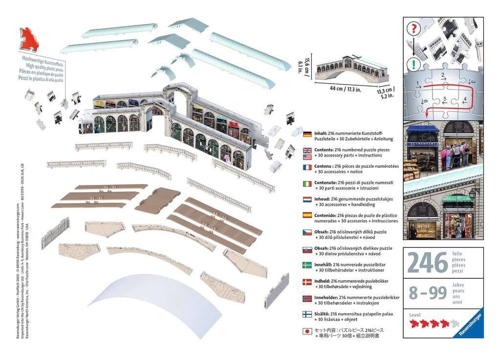RAVENSBURGER zozšiřuje úspěšnou sadu modelů staveb a zkouší nové možnosti! Zažijte jedinečnou kombinaci skládání puzzle a stavění modelu a vytvořte svůj vlastní ohromující italský most Ponte di Rialto.