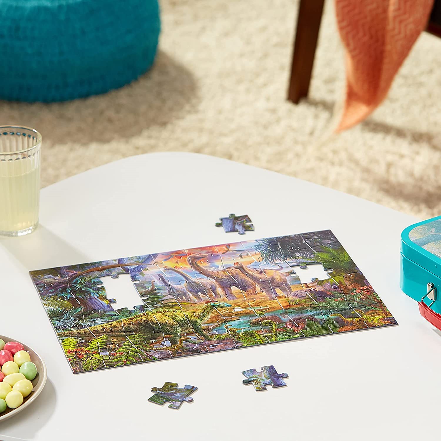 Čtyři puzzle pro děti se 60 a 100 dílky s obrázky dinosaurů. Baleno v plechovém kufříku. Více informací