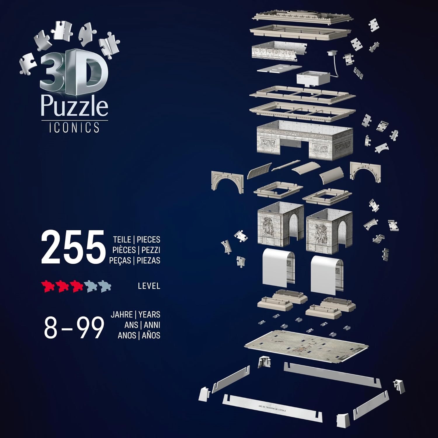 Svítící 3D puzzle Ravensburger Iconics: Vítězný oblouk (Noční Edice) 255 dílků
