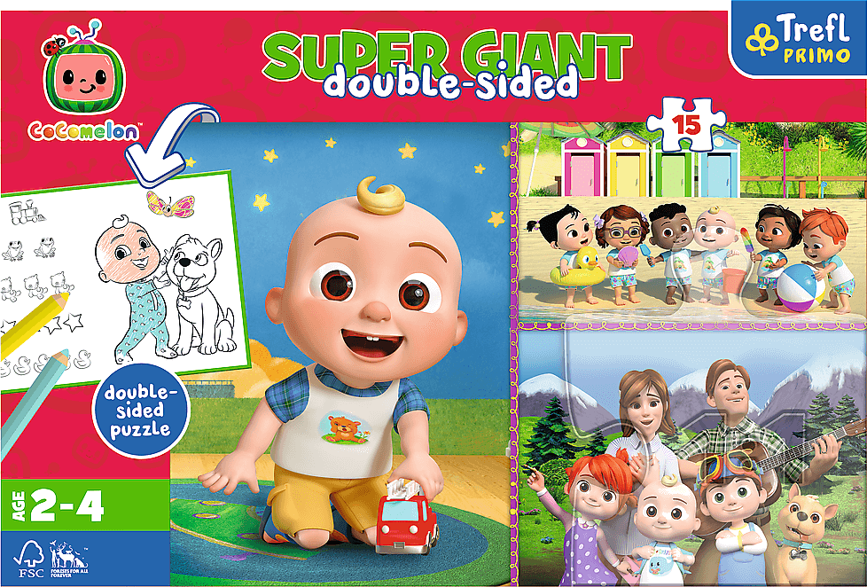TREFL Oboustranné puzzle Cocomelon: Veselý den s přáteli SUPER GIANT 15 dílků