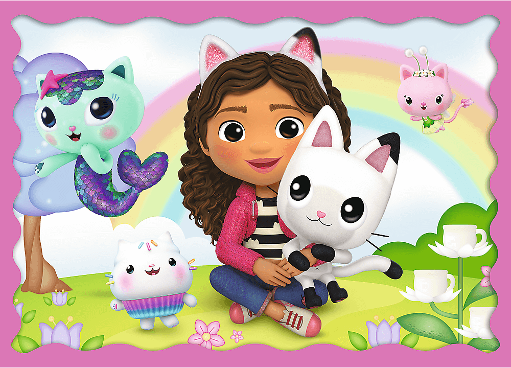 Dětské puzzle TREFL s motivem dětského seriálu Gábinin kouzelný domek. Progresivní puzzle s různou obtížností - 4 puzzle s 35 - 70 dílky.