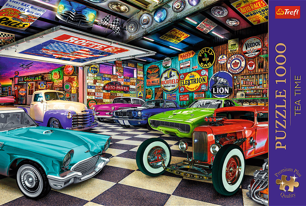 TREFL Puzzle Premium Plus Tea Time: Garáž sběratele aut 1000 dílků