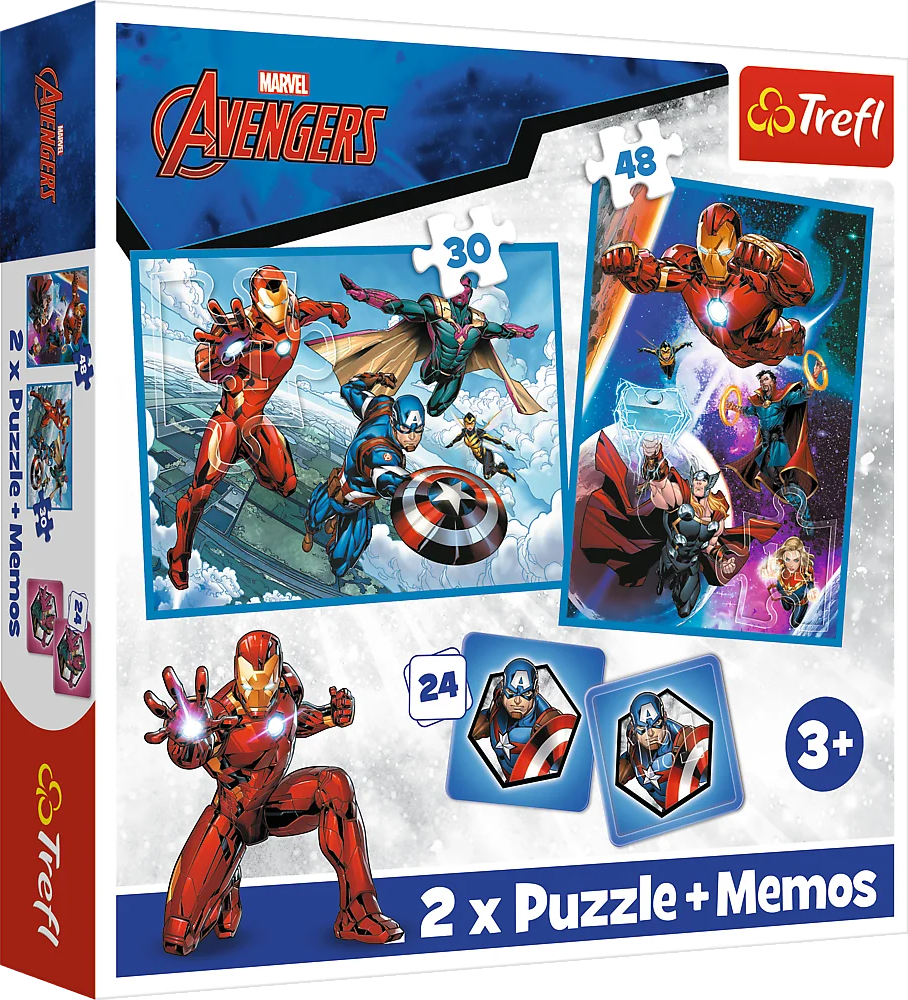 TREFL Sada 3v1 Avengers: Hrdinové v akci (2x puzzle + pexeso)