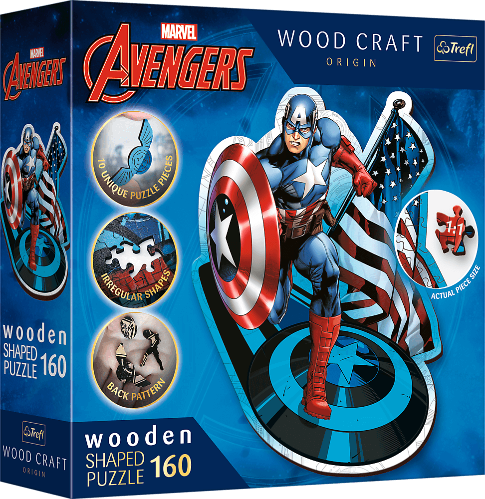 TREFL Wood Craft Origin puzzle Neohrožený Kapitán Amerika 160 dílků