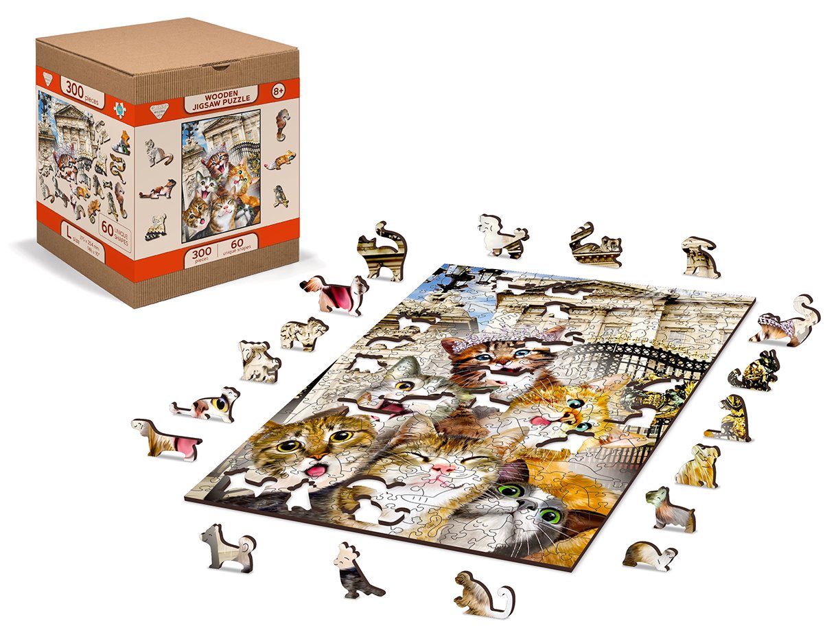 WOODEN CITY Dřevěné puzzle Koťata v Londýně 2v1, 300 dílků EKO