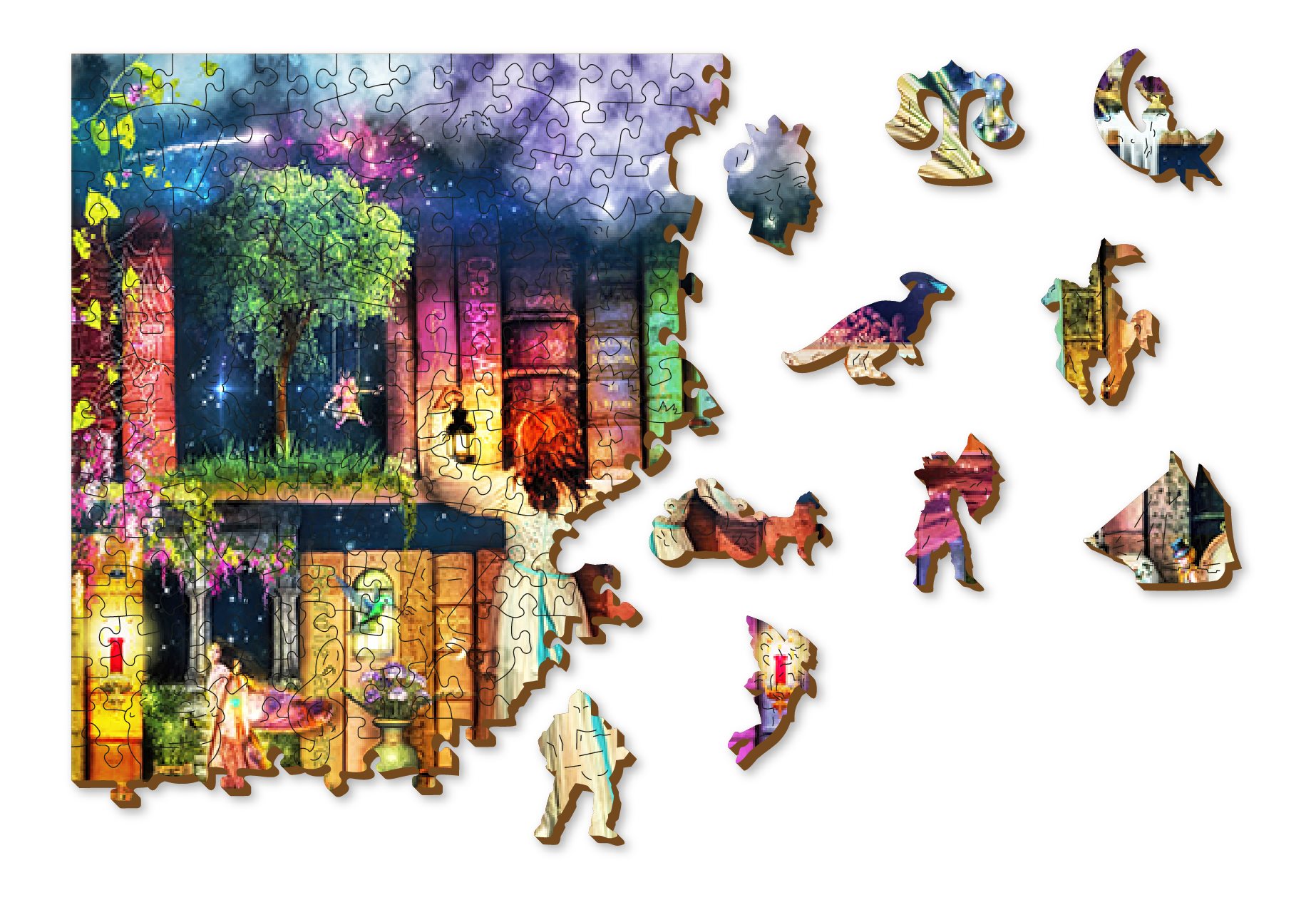 Laserem vyřezávané dřevěné puzzle WOODEN CITY se svými speciálně tvarovanými dílky je neskutečně zábavné. Část dílků je vyrobena ve tvaru zvířat, staveb nebo předmětů, jejichž výsledný efekt umocňují laserem zvýrazněné detaily.