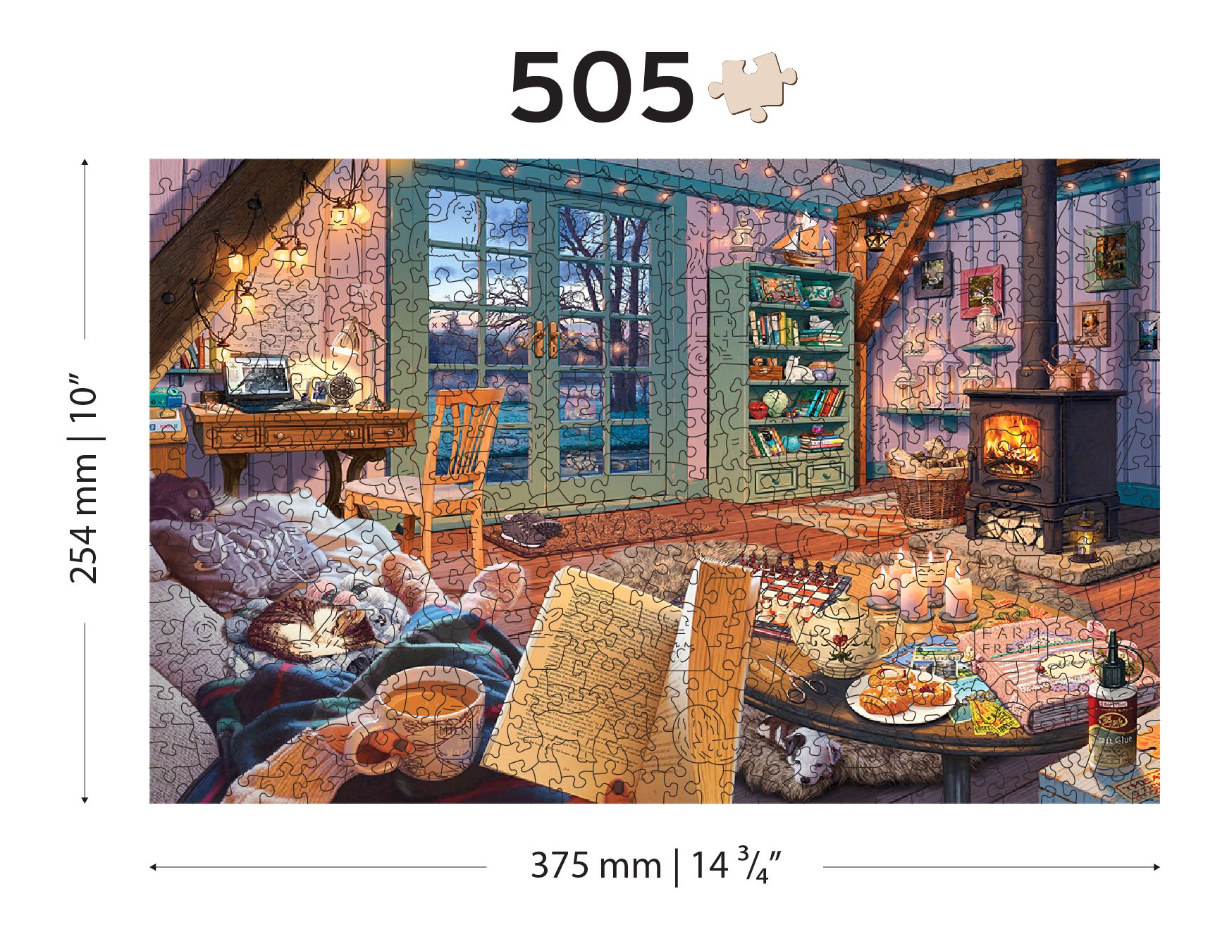 WOODEN CITY Dřevěné puzzle Útulná chata 2v1, 505 dílků EKO